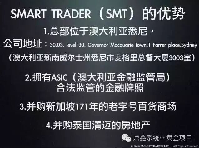 SMT继承延续了SMI 财富传奇:SMT集合了复利倍增和现金流的原理加二元期权,绝对的先机,以扶持平民为理念,仅用极小的资金就会获得巨大的资金回报;运作原理只有赢家没有输家,在只涨不跌的虚拟股市中,用时间来成就我们的财富自由。公司它以诚实守信的运营原则,成为业界光辉的典范;以独到超前的运作模式被千万会员追踪,它一直被模仿,但从未被超越,演绎着业界神话,缔造着财富传奇!相信SMT的明天会更加灿烂辉煌!